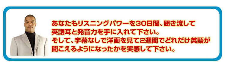 30日間、リスニングパワーを聞き流すだけでも、今まで聞こえなかった英語の音が耳に入ってくる感覚を体感することでしょう。