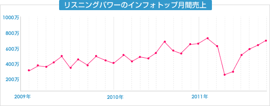 インフォトップのランキングでトップに入るような商品でも、多くの商品が、ある程度たつと徐々に人気が下がっていくのですが、リスニングパワーは、販売開始して3年以上たった今でも未だに人気が落ちるどころか、毎月、売り上げが伸び続けています。